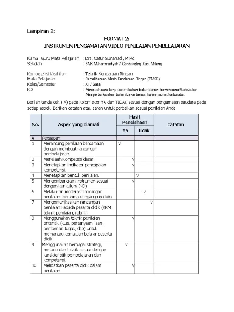Format di atas dapat juga digunakan untuk menilai kompetensi pengetahuan dan keterampilan.